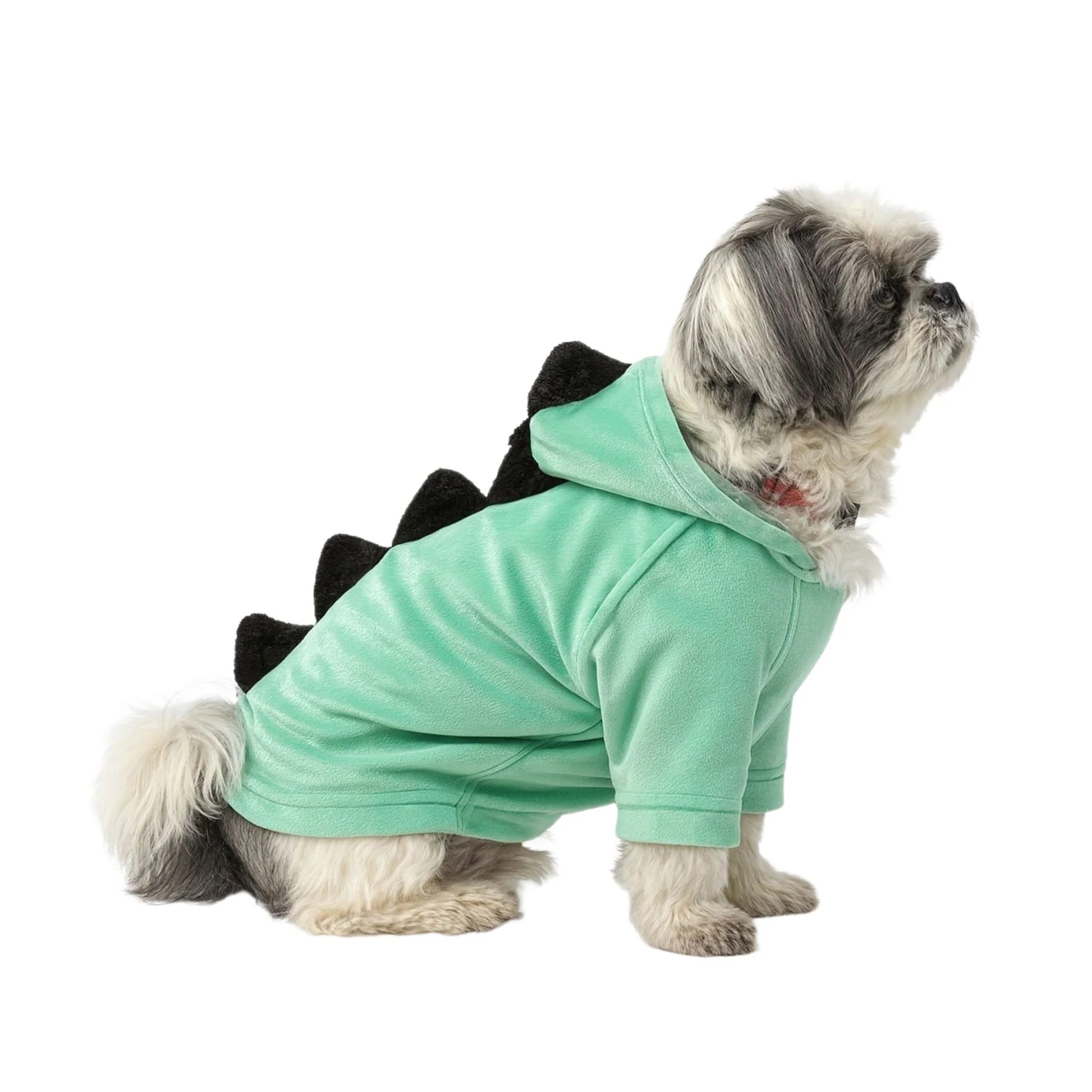 Designed for both comfort and style, this fun dino-themed hoodie helps protect your dog from cold weather while making them look irresistibly cute.